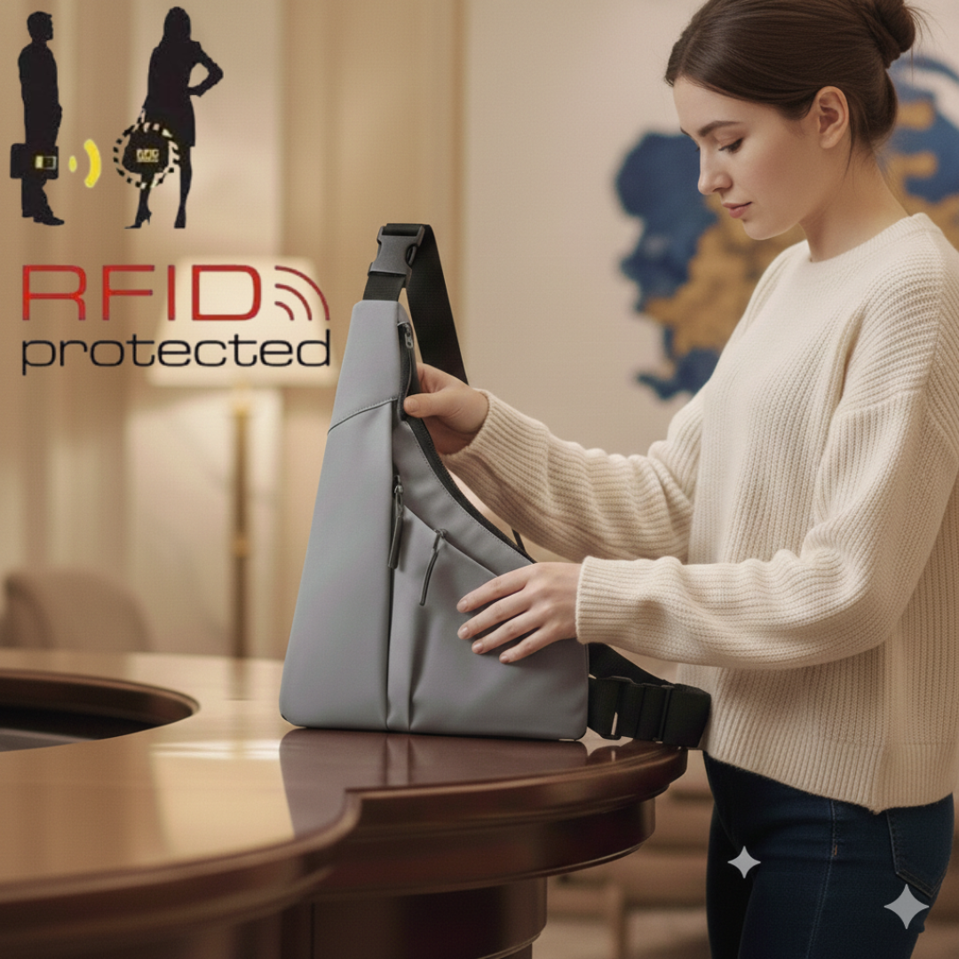 E' la borsa ideale per accompagnarti ogni giorno in viaggio, a lavoro o nel tempo libero. Dal design moderno e funzionale, unisce confort sicurezza e resistenza in un unico accessorio indispensabile. Inoltre la protezione RFID difende le tue carte di credito e smartphone da pagamenti e scansioni indesiderate offrendoti maggiore sicurezza ovunque tu sia.